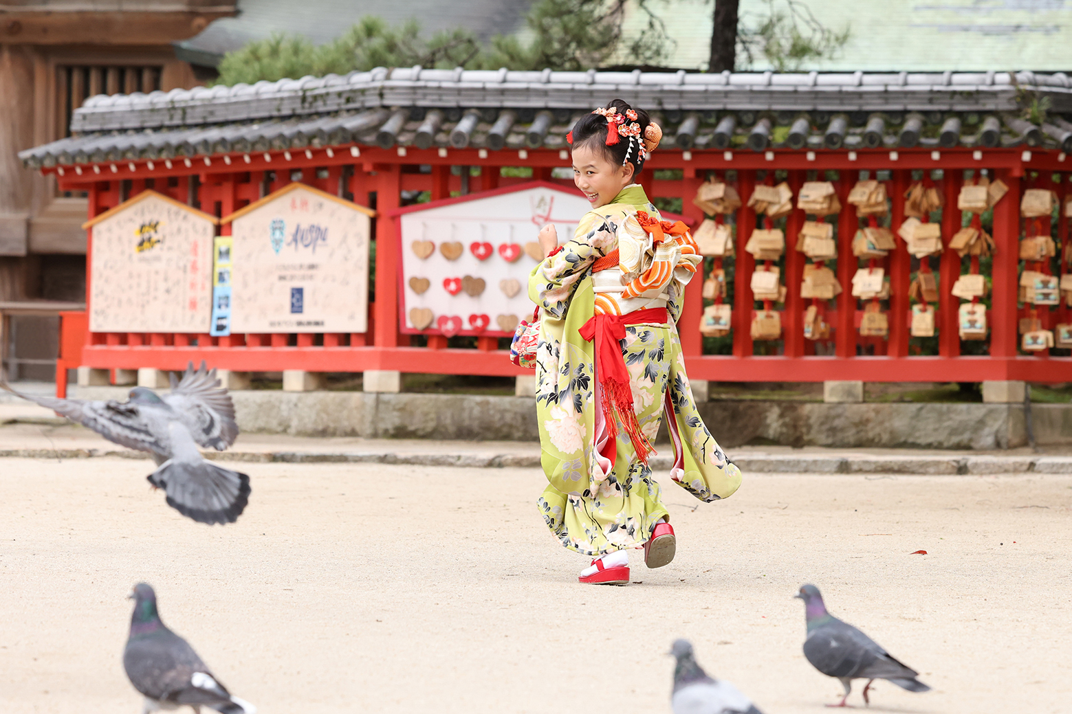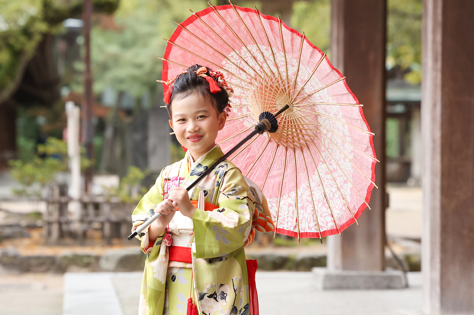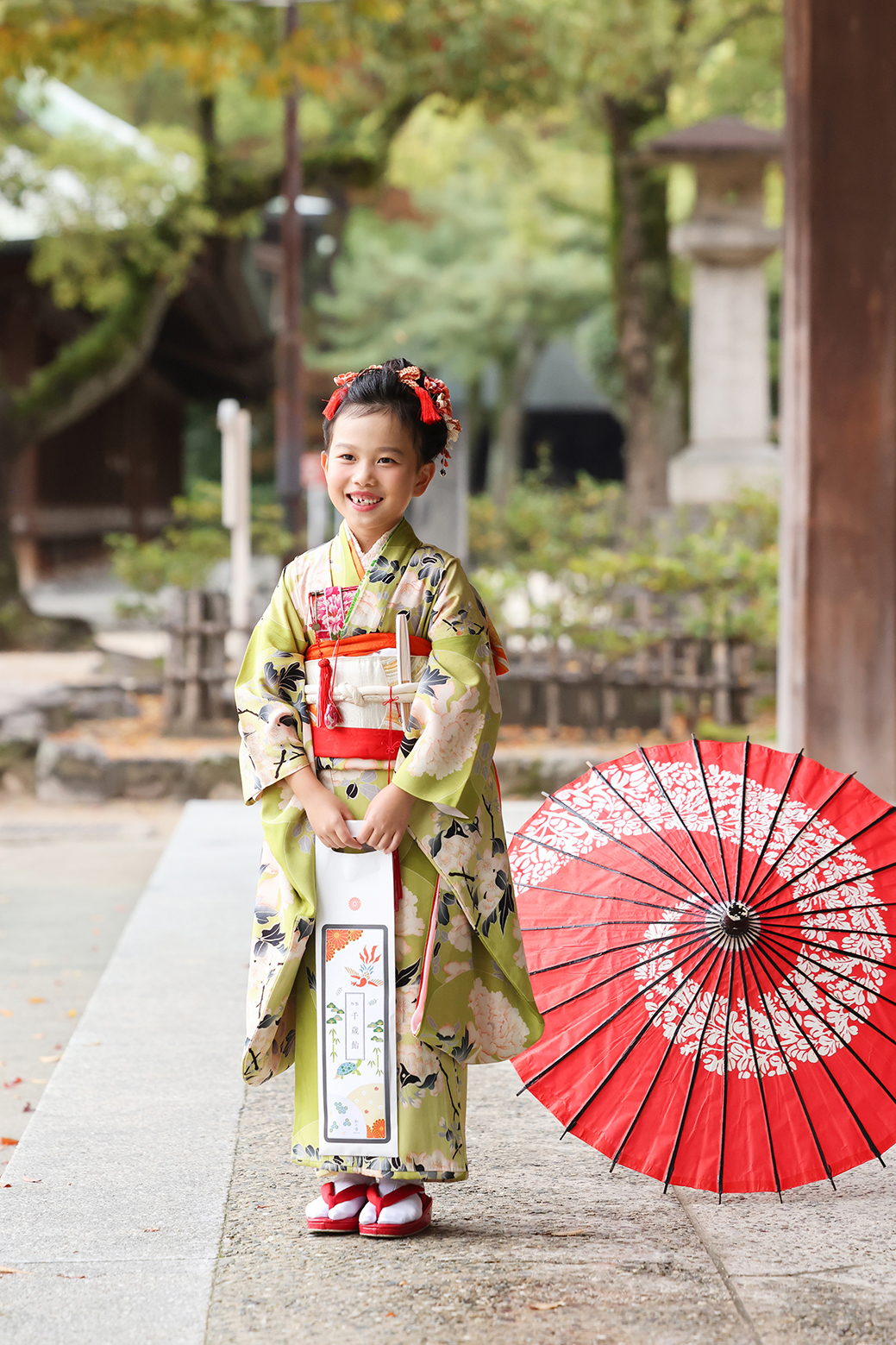 kimono: 七歳着物:わかくさ